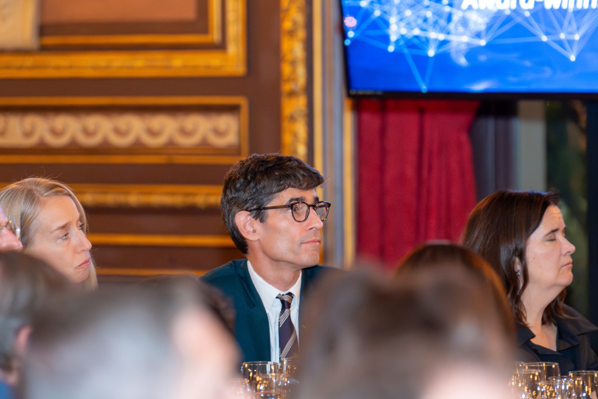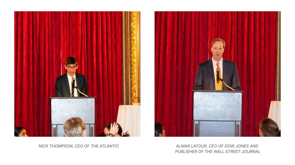 NCAFP Trustee Nick Thompson, CEO of The Atlantic, presented the Global Business Leadership Award to Mr. Almar Latour, CEO of Dow Jones and Publisher of The Wall Street Journal, in recognition of his leadership in protecting press freedom and supporting the work of journalists. Mr. Thompson highlighted Mr. Latour’s role in advocating for the release of journalist Evan Gershkovich. In his remarks, Mr. Latour emphasized the essential importance of journalism and access to information.